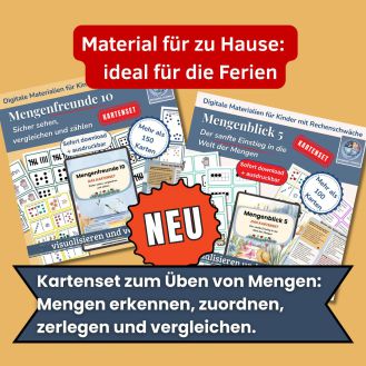Ich habe zwei pädagogisch durchdachte Kartensets mit Spiel-und Übungsanleitung entwickelt, die Kinder dabei unterstützen, Mengen sicher zu erkennen, zu vergleichen, zuzuordnen und zu zerlegen.